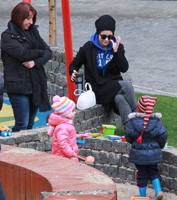 Ани Лорак сфотографировали во дворе собственного дома, когда она вместе с двухлетней дочерью Соней играла в песочнице. Звездная мама вместе с дочкой с интересом лепила пасочки и каталась на горке. Иногда звезда отвлекалась поговорить по телефону, но ей на помощь приходила няня, пишут
