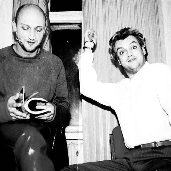 На снимке оба артиста совсем молоды, а у привычного поклонникам лысого Гоши даже на черно-белом фото можно разглядеть волосы на голове.