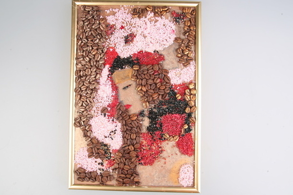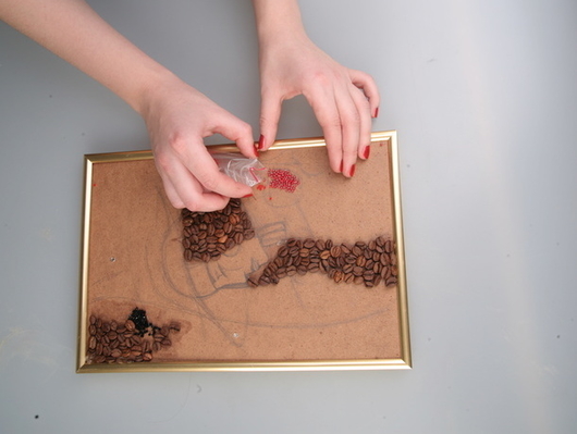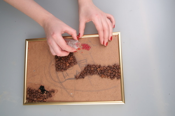 С помощью кофейных зерен и бисера, создай оригинальную композицию-картинку