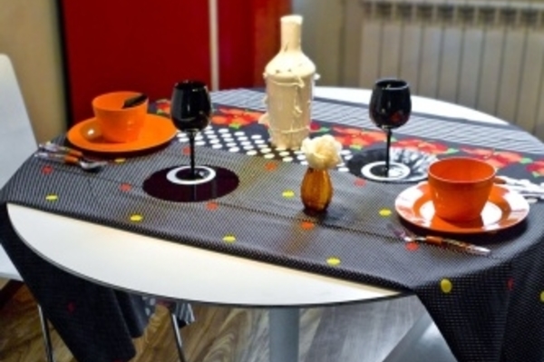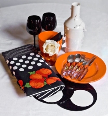 При оформлении праздничного стола можно сыграть на контрастах, такая сервировка выглядит стильно и ярко.
