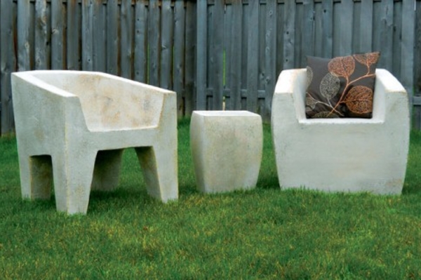 Мебель из бетона – логичное продолжение каменных садовых форм. У нее есть свои преимущества: возможность установки на платформу на колесиках, а значит – большая мобильность, возможность придания любой желаемой формы.