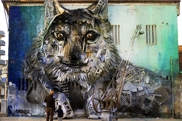 Португальский скульптор и уличный художник Артур Бордало, более известен под псевдонимом Бордало Второй, создает удивительные арт-объекты в форме животных, материалы для которых он находит на заброшенных промышленных фабриках и свалках.