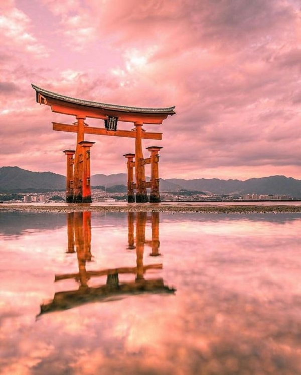 Это священное место можно найти на острове Ицукусима. Считается, что оно было построено в 6 веке в честь трех дочерей бога Сусаноо-но Микото. Раз за разом конструкция разрушалась и ее приходилось восстанавливать снова. Нынешнюю соорудили в 16 веке. Святилище Ицукусима еще называют ритуальными вратами. Есть одна традиция: во время отлива стоит пешком пойти к вратам и, засунув монету в трещину конструкции, загадать желание и оно сбудется.
