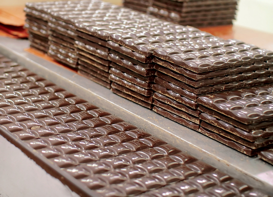 В шоколадную массу, которую соединяют с маслом какао, добавляют необходимые ингредиенты – молоко, сахар, лецитин (для вязкости) – и тщательно перемешивают. Затем шоколад разливают в формы, охлаждают и, в завершение, упаковывают.