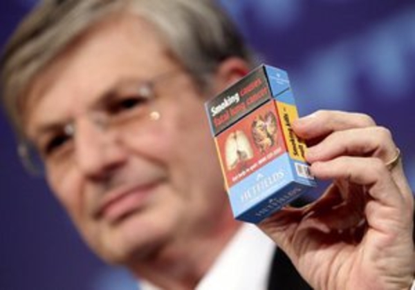 В настоящее время надписи о вреде курения на сигаретных пачках составляют 30% минимального покрытия на одной стороне и 40% на другой.